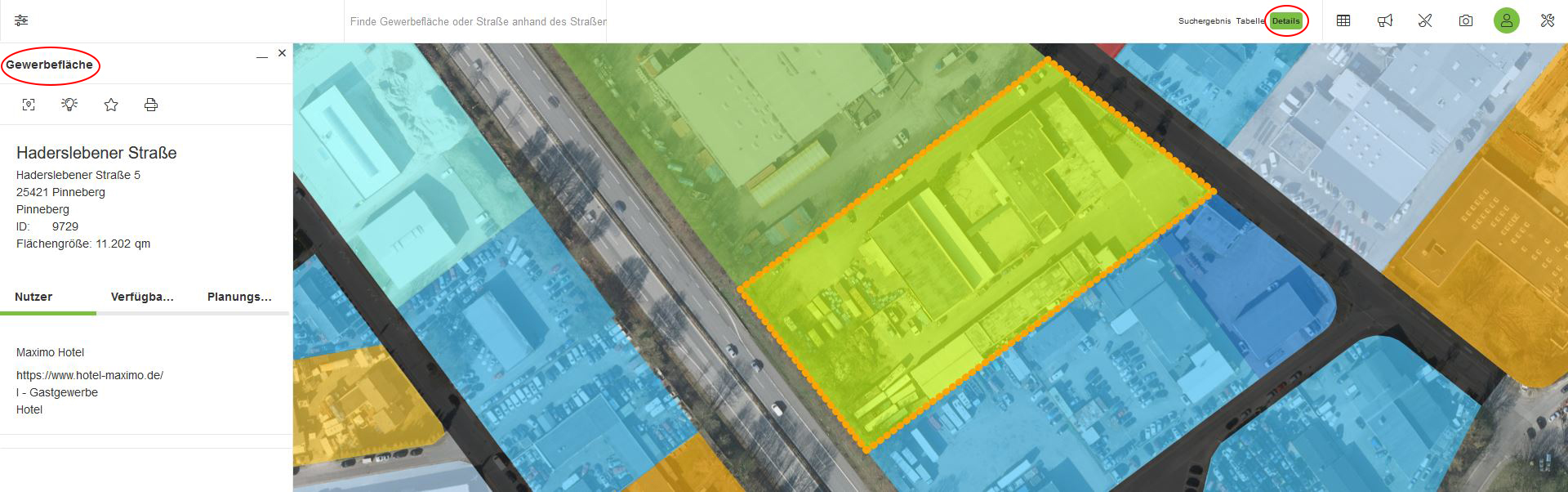 Mit einem Klick auf das X in der rechten oberen Ecke kann z.B. eine Tabellenansicht und Detailansicht geschlossen werden und über kann eine Tabellenansicht in der Breite mit einem Klick ausgedehnt werden.