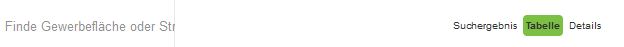 Die Abbildung zeigt links den Eingabeschlitz der Suche und rechts die oben beschriebnen Funktionen zur Steuerung der Anzeige einer Ergebnisliste, der Tabelle und Detailansicht